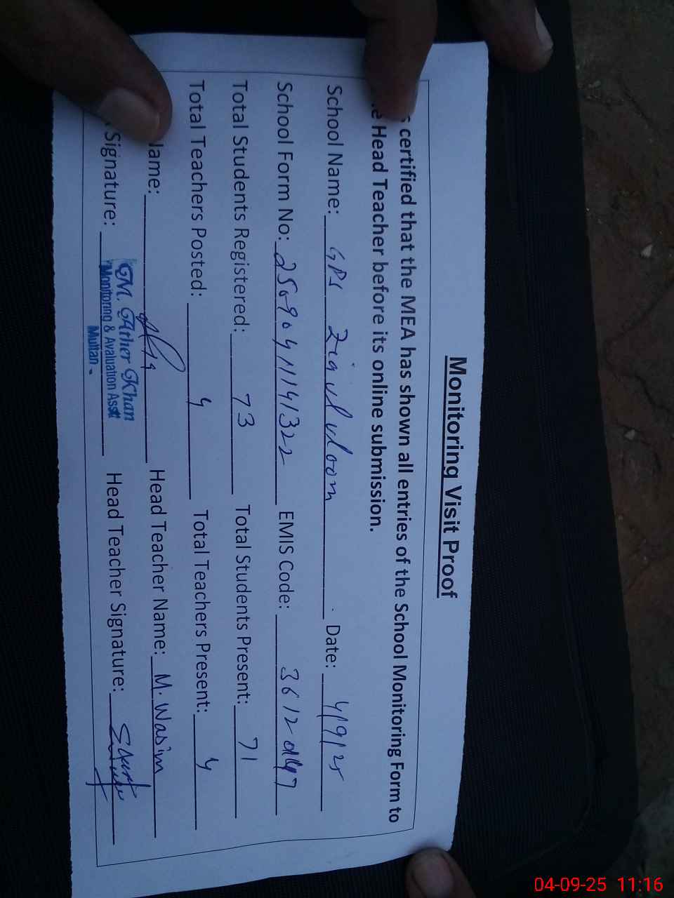 | EMIS Code: 36120147 | Name of School: GPS ZIA-UL-ULOOM MOHALLA HAFIZABAD | |||