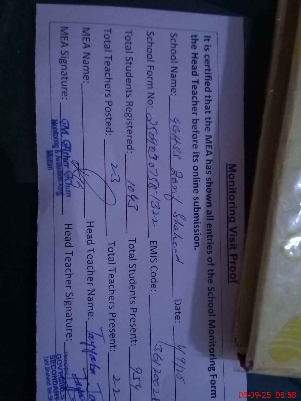 | EMIS Code: 36120028 | Name of School: GGHSS ZARIF SHAHEED SHAUJABAD | |||
