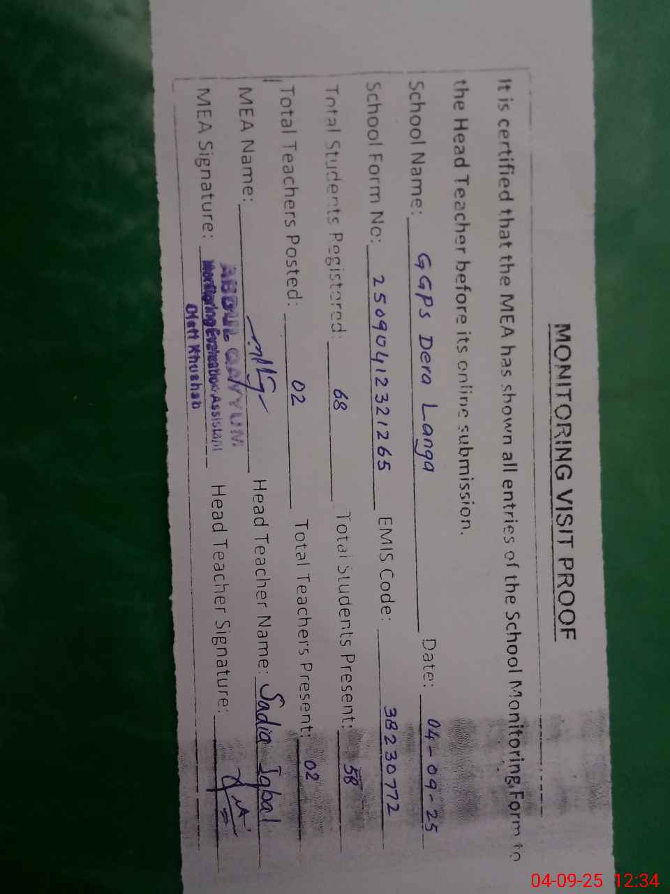 | EMIS Code: 38210772 | Name of School: GGPS DERA LANGA | |||