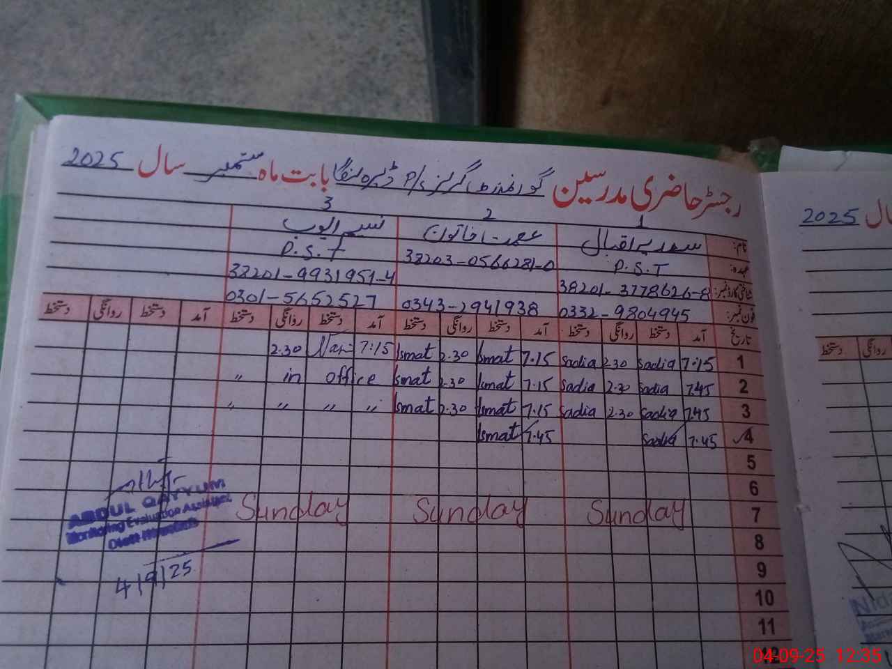 | Name: Sa**** Iq**** Designation: (School Headmaster's/Headmistress's) Pst Phone/Cell Number: 03**** |
