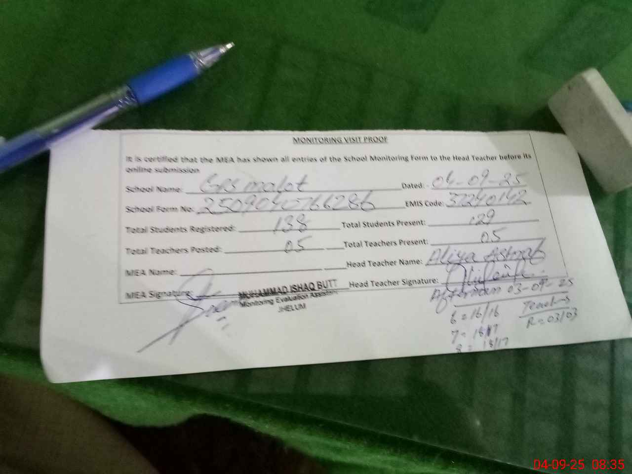 | EMIS Code: 37240142 | Name of School: GPS MALOT | |||