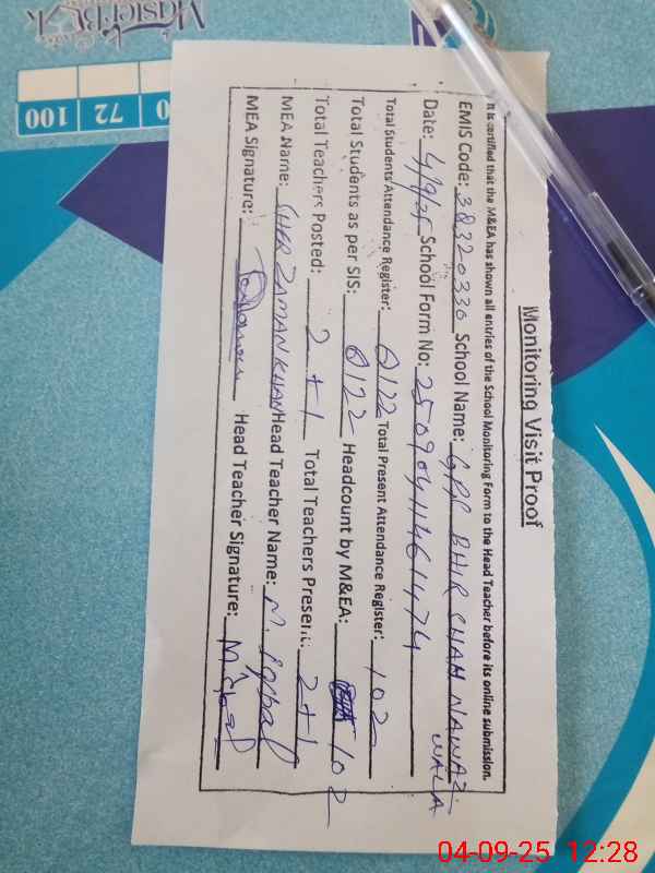 | EMIS Code: 38320330 | Name of School: GPS BHIR SHAH NAWAZ WALA | |||