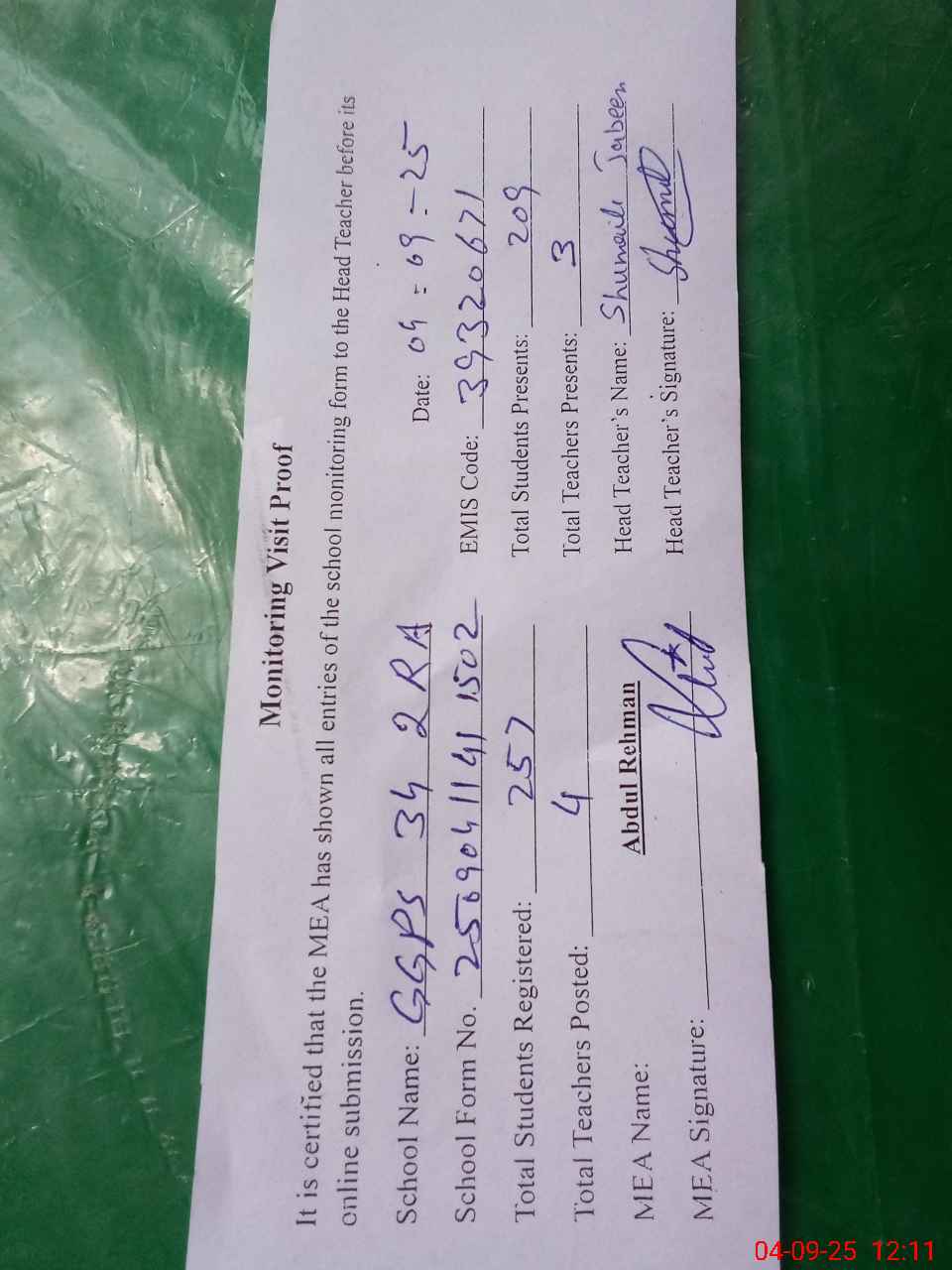 | EMIS Code: 39320671 | Name of School: GGPS CHAK NO.34/2-RA | |||