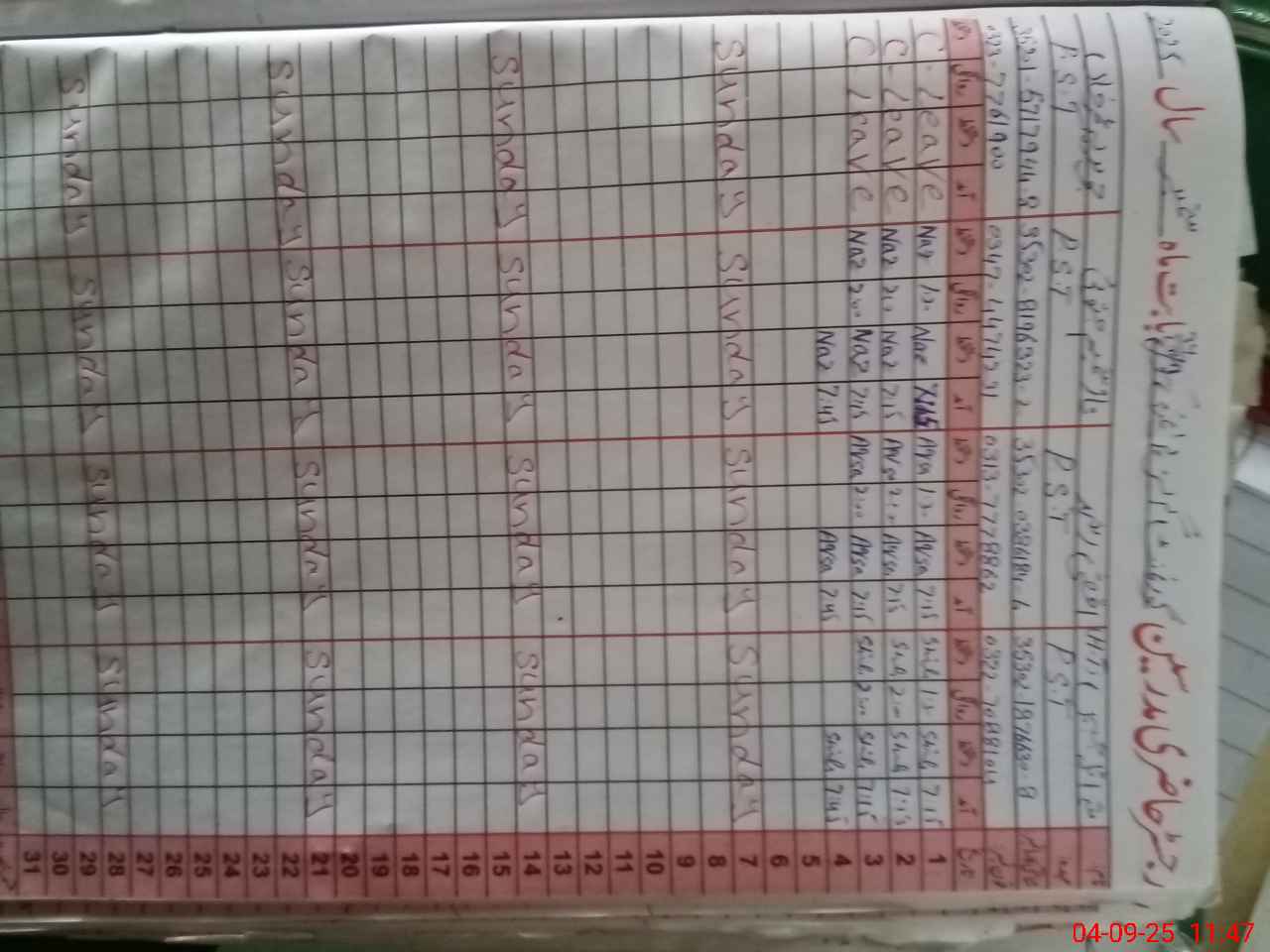 | 35**** | Ja**** Um**** Kh**** | PST | Regular | 0 | 0 | 0 | 0 | 0 | 0 | 0 | 0 | 0 | Absent (Un-Authorized) |