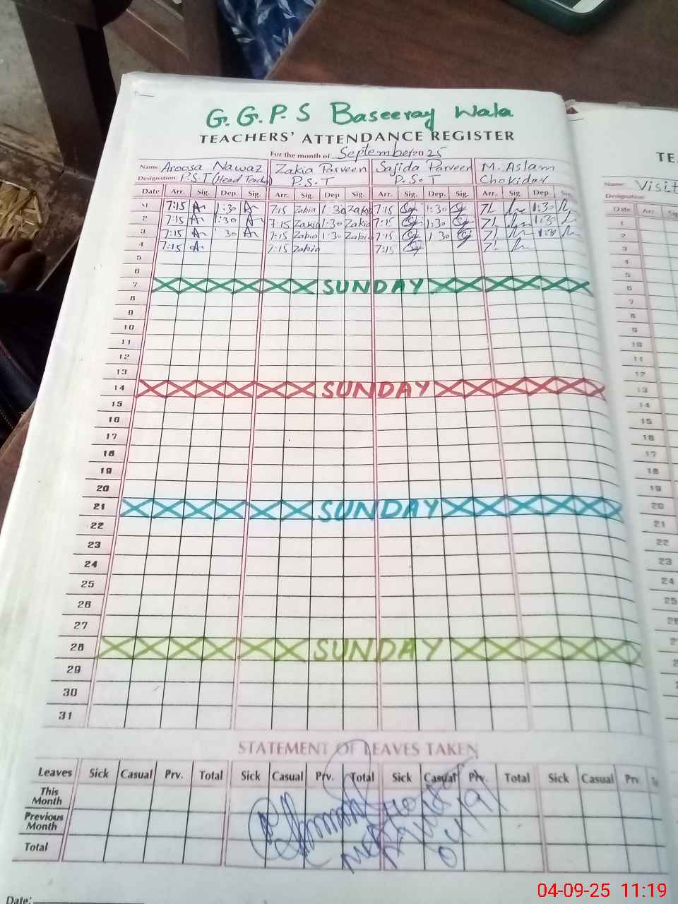 | Leave | Duty | Absent | Maternity | Medical | Ex- Pak |
