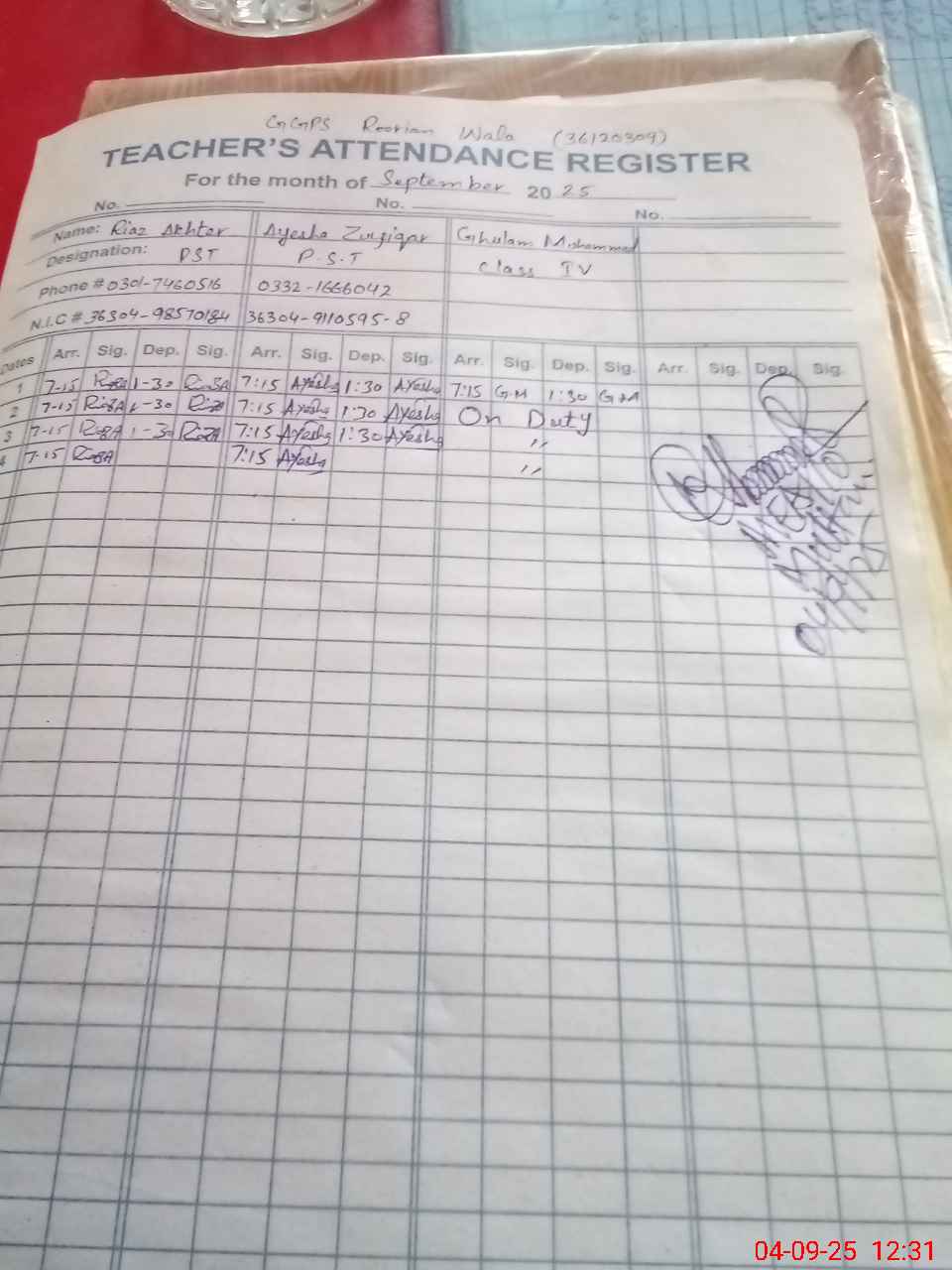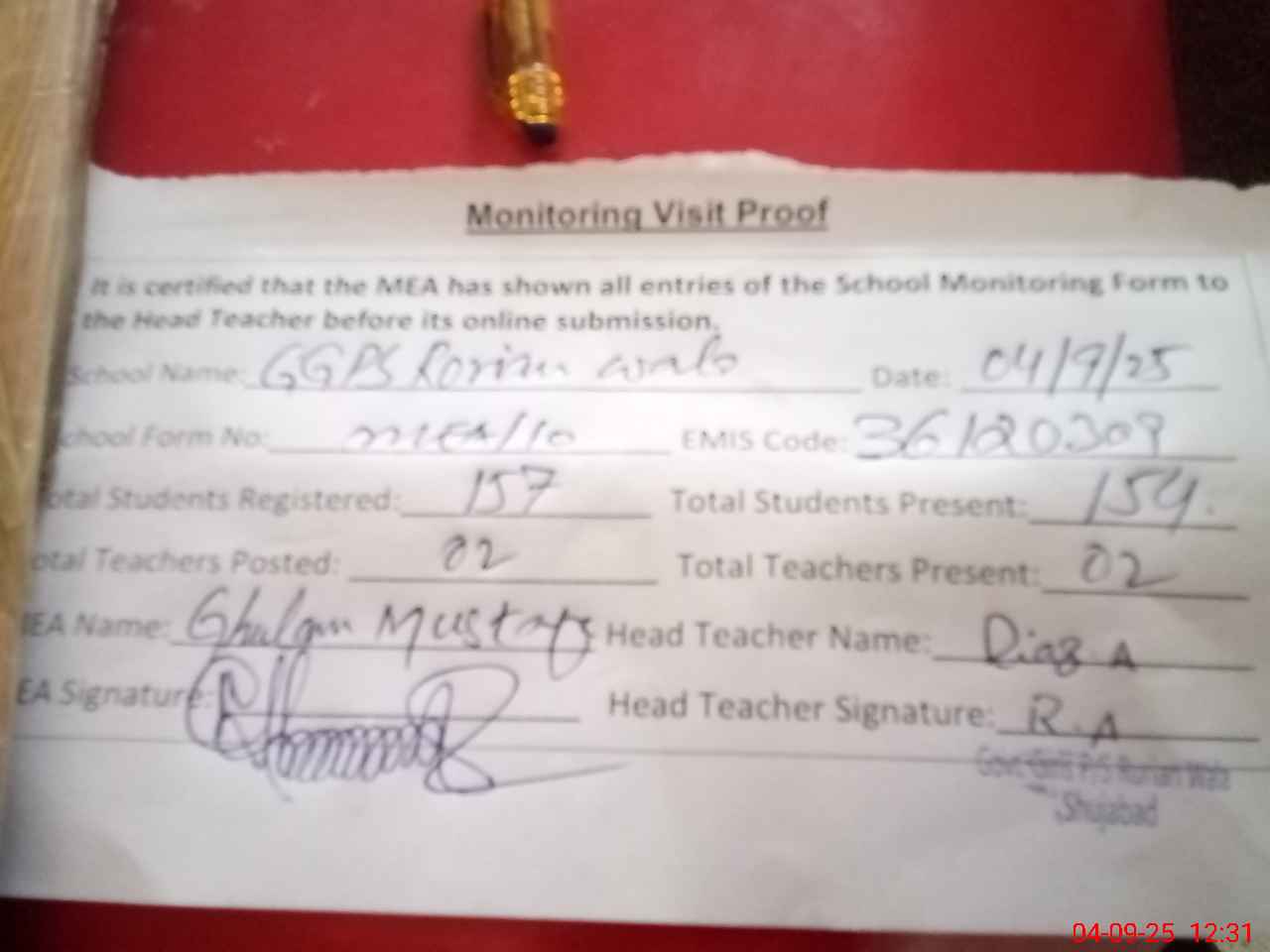| EMIS Code: 36120309 | Name of School: GGPS ROORIAN WALA SHUJABAD | |||