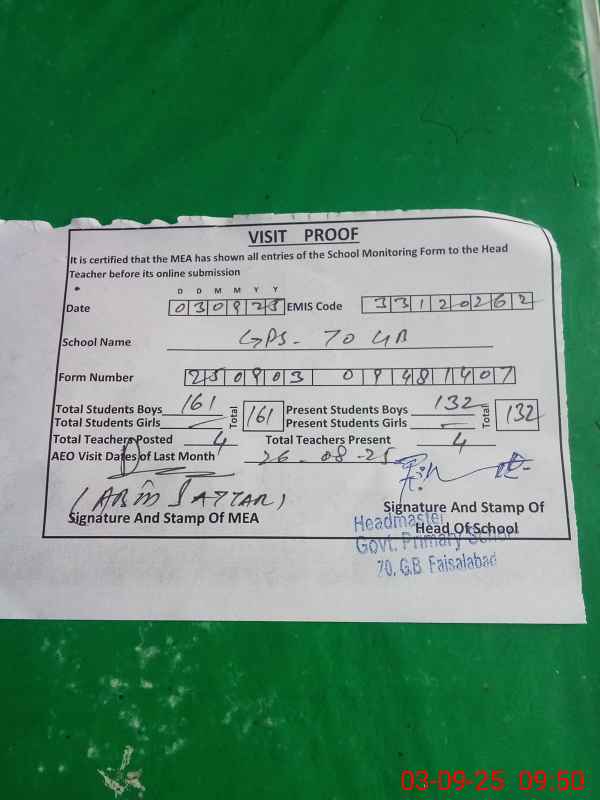| EMIS Code: 33120262 | Name of School: GPS 70 GB | |||