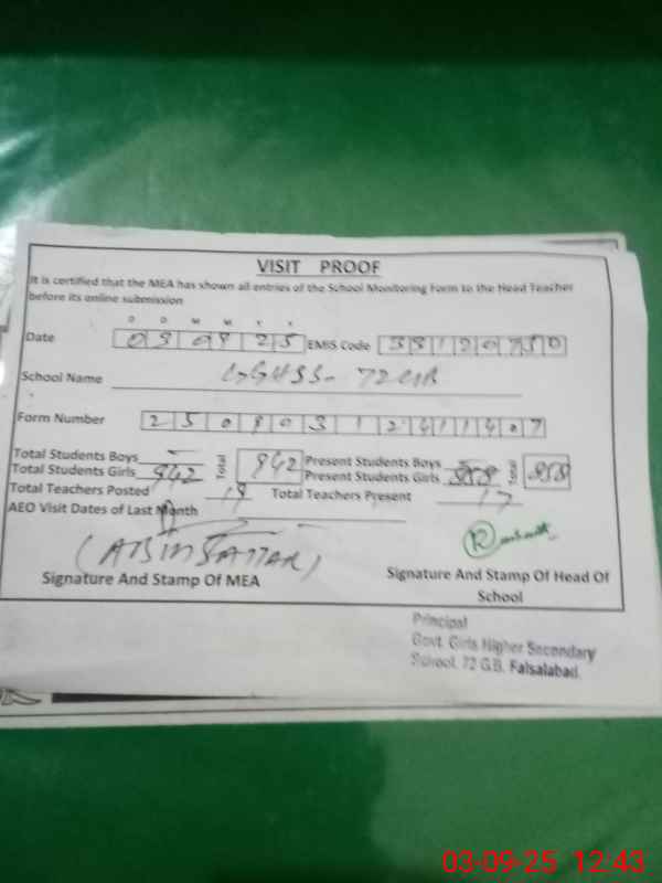 | EMIS Code: 33120750 | Name of School: GGHSS CHAK 72 GB | |||