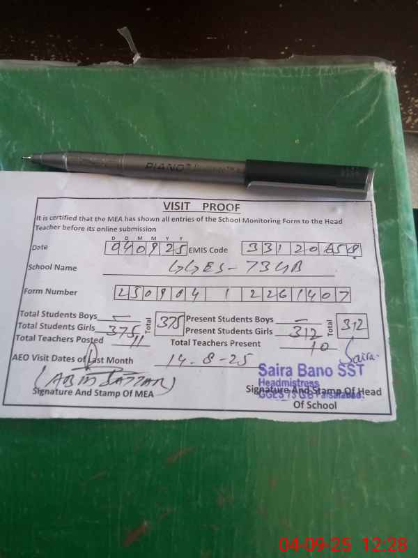 | EMIS Code: 33120658 | Name of School: GGES CHAK 73 GB SATIANA | |||