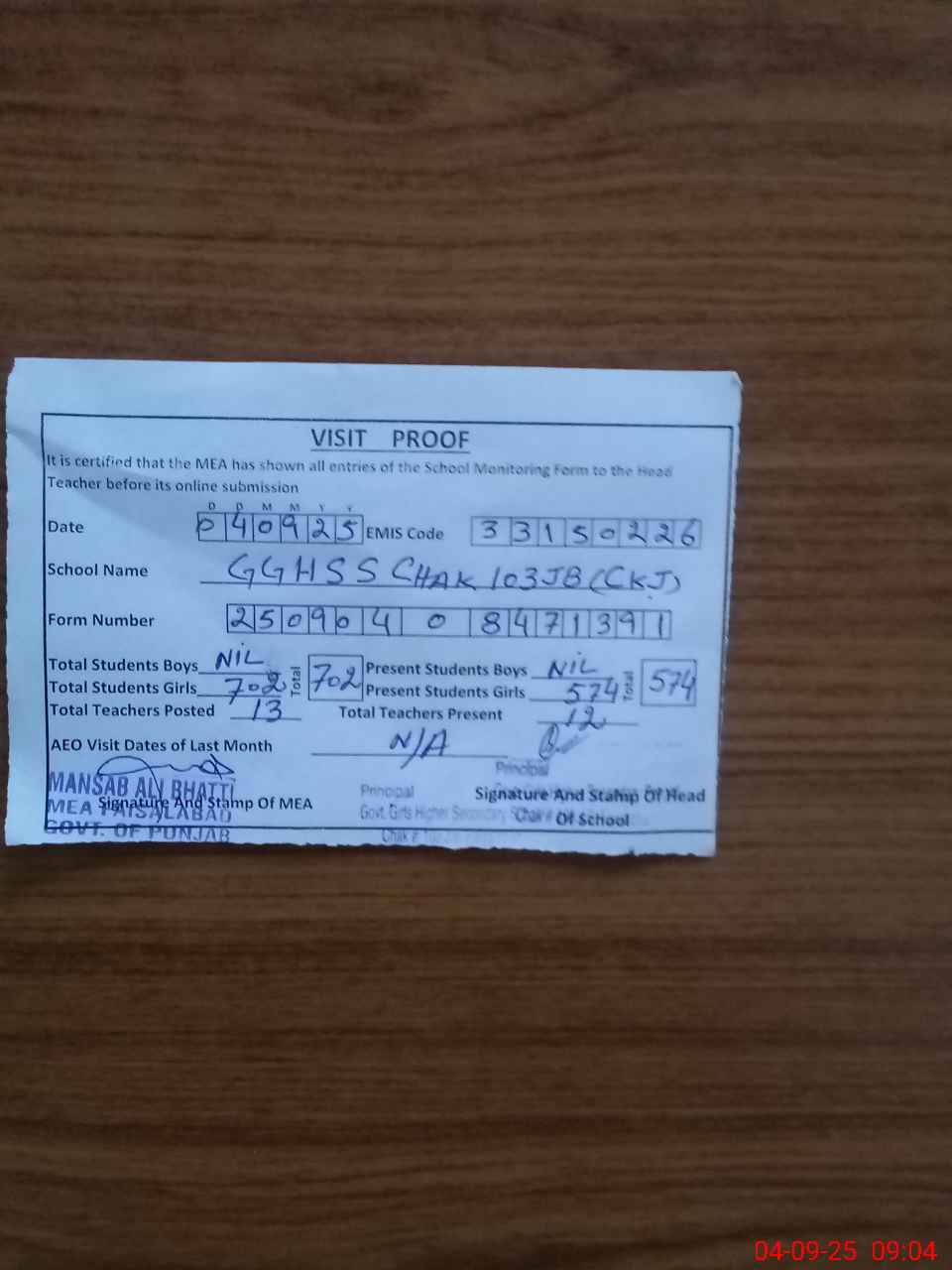 | EMIS Code: 33150226 | Name of School: GGHSS CHAK 103 JB CHAK JHUMRA | |||