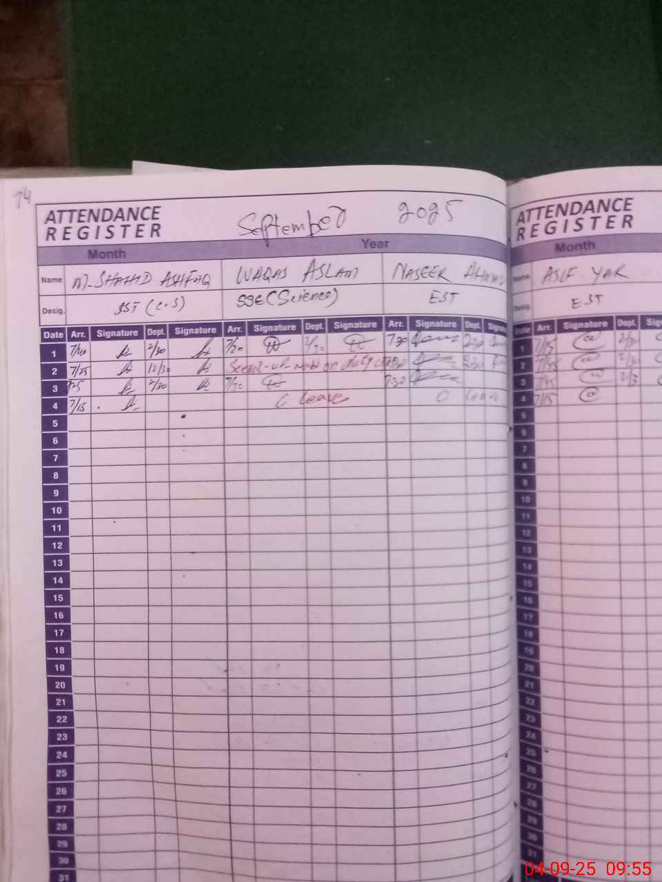 | Monitoring Date: 04-09-2025 | Start Time: 04-09-2025 09:20 AM | End Time: 04-09-2025 10:41 AM | Name of MEA: Ma**** Al**** | |