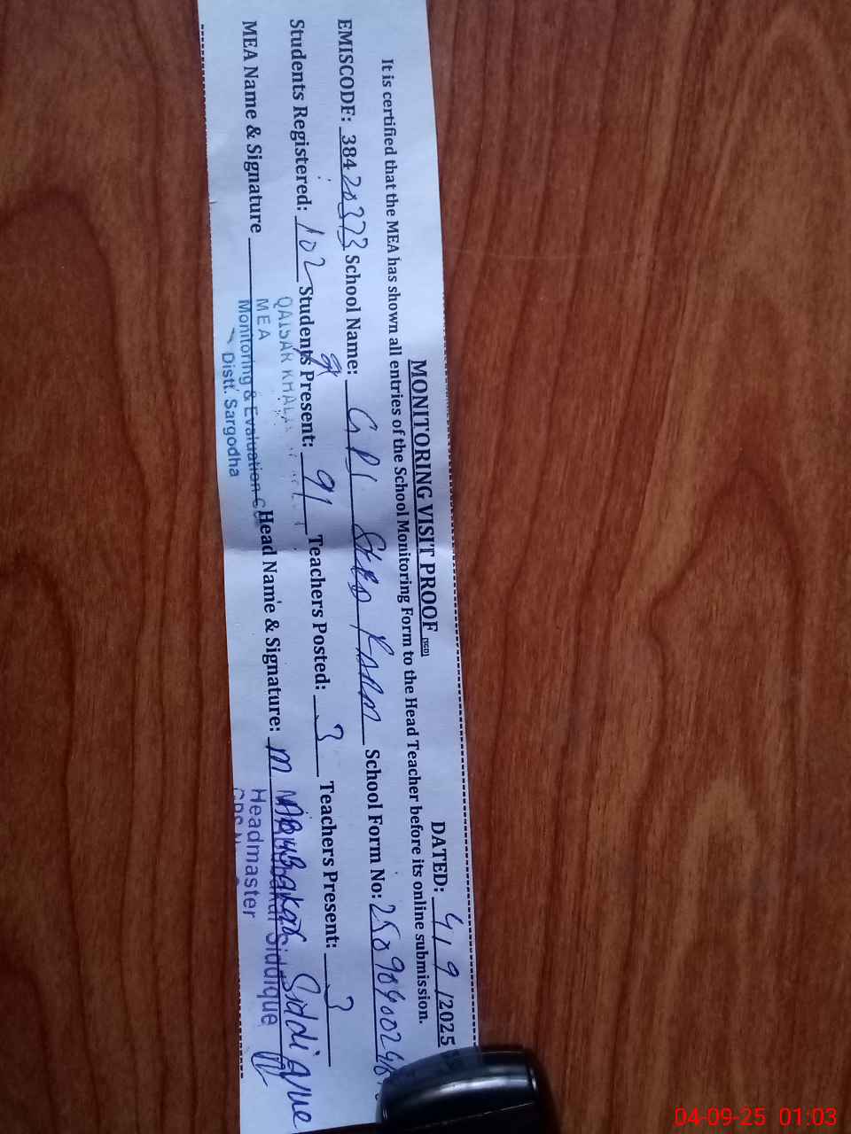 | EMIS Code: 38420373 | Name of School: GPS NEW SEED FARM CHAK NO.38 NB | |||