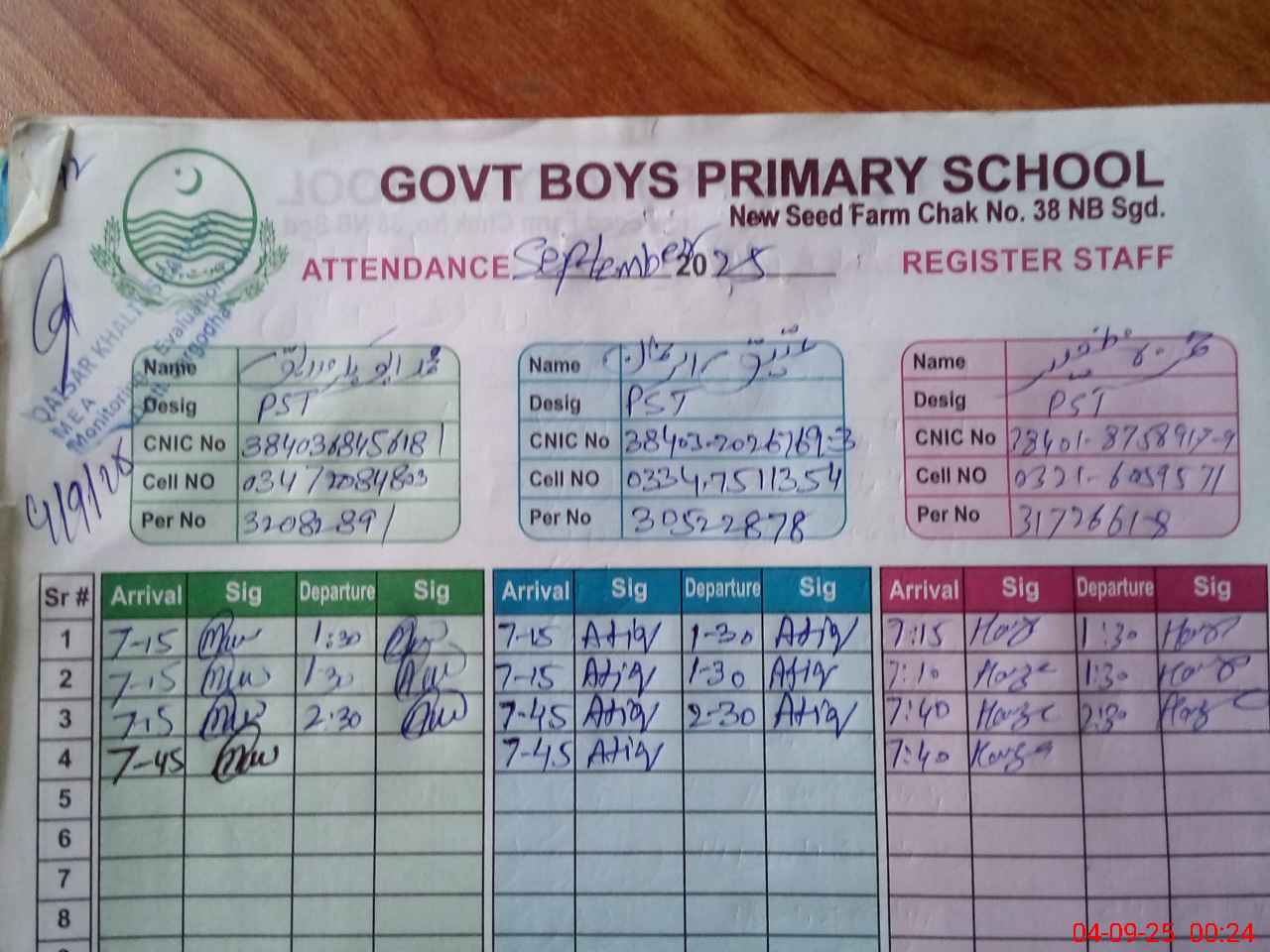 | Name: MAb**** Si**** Designation: (School Headmaster's/Headmistress's) PST Phone/Cell Number: 03**** |