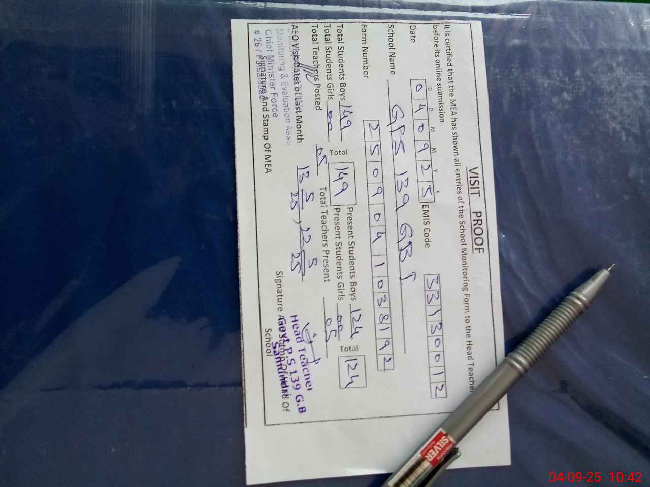 | EMIS Code: 33130012 | Name of School: GPS CHAK 139 GB SAMUNDRI | |||