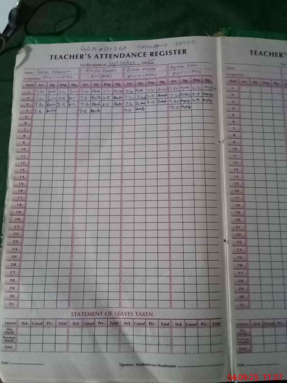 | Name: SA**** NA**** Designation: (School Headmaster's/Headmistress's) PST Phone/Cell Number: 03**** |