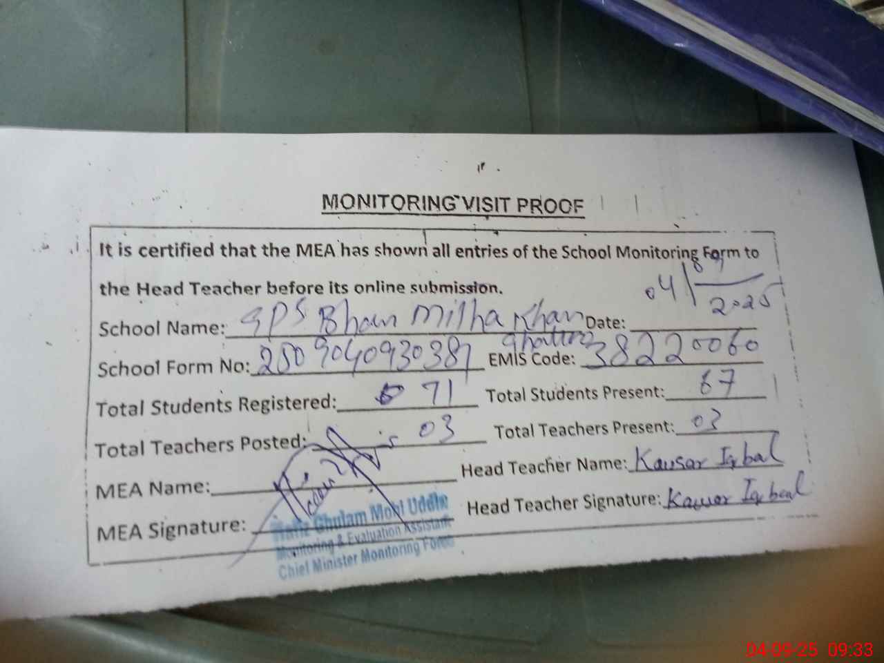 | EMIS Code: 38220060 | Name of School: GPS MITHA KHAN GHALL | |||