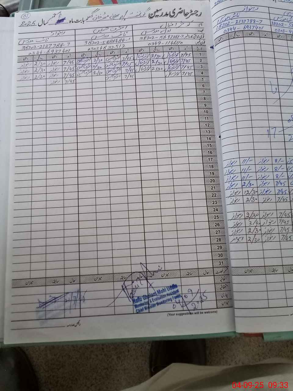 | Name: Ka**** Iq**** Designation: (School Headmaster's/Headmistress's) PST Phone/Cell Number: 03**** |