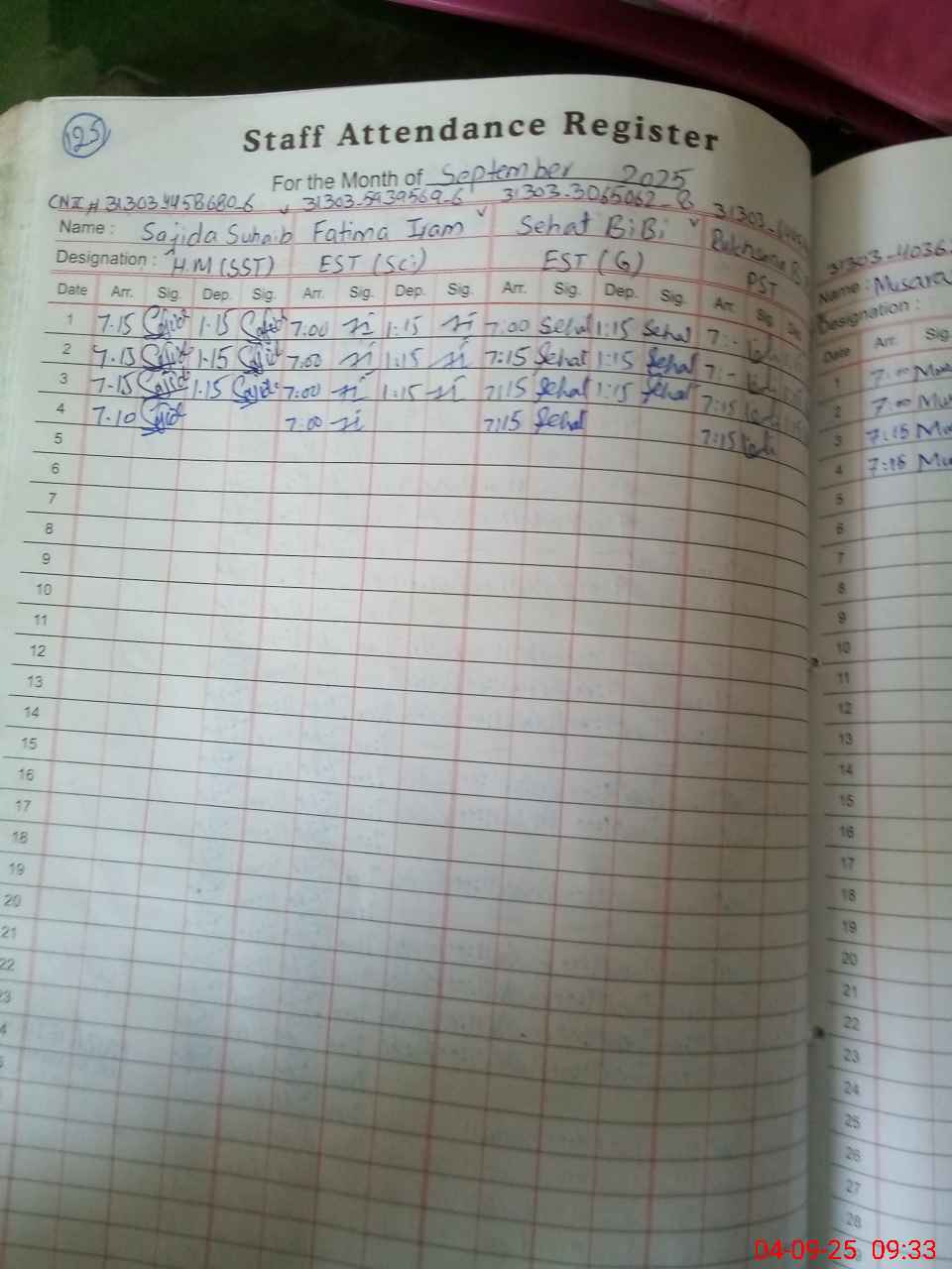 | Monitoring Date: 04-09-2025 | Start Time: 04-09-2025 09:27 AM | End Time: 04-09-2025 10:28 AM | Name of MEA: Kh**** Iq**** | |