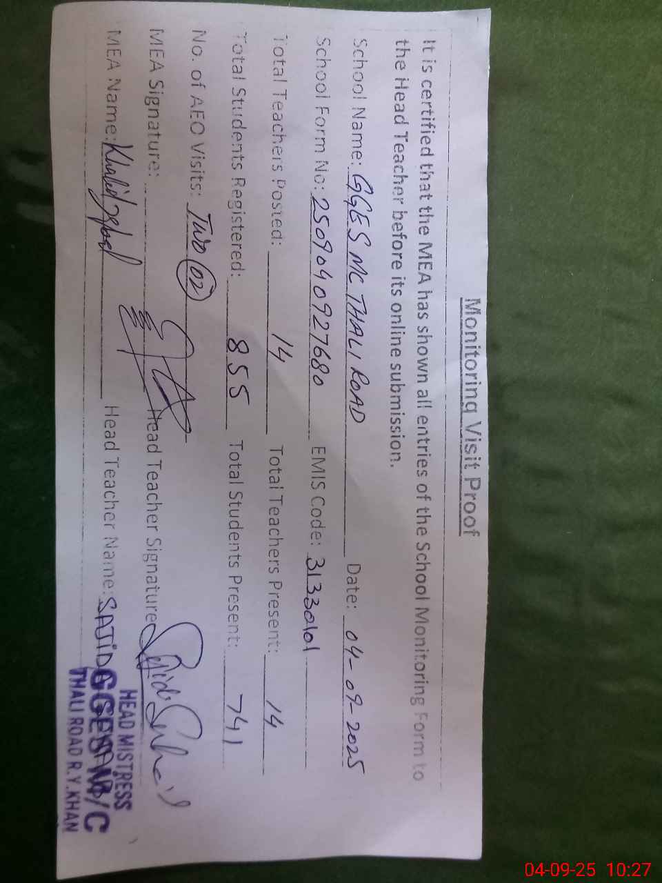 | EMIS Code: 31330101 | Name of School: GGES MC THALI ROAD | |||