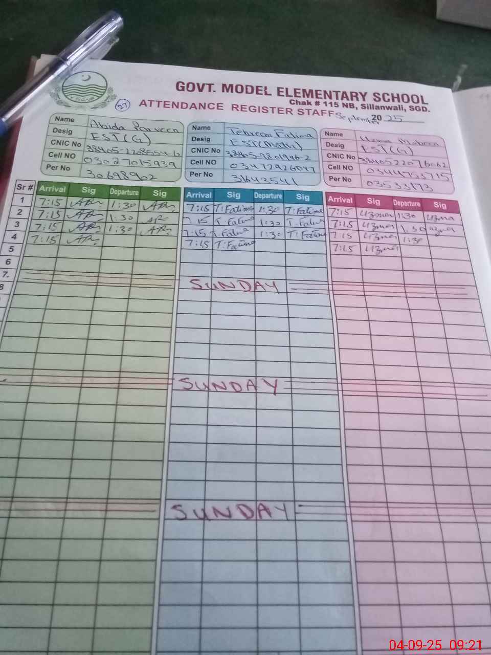 | Name: Ab**** Pa**** Designation: (School Headmaster's/Headmistress's) EST G Phone/Cell Number: 03**** |