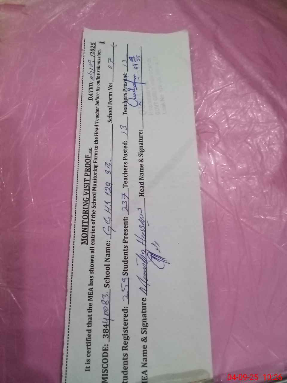 | EMIS Code: 38440083 | Name of School: GGHS CHAK NO 129 SB | |||