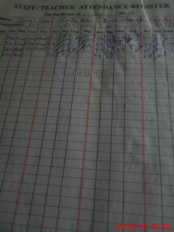 | 37**** | Ni**** Ya**** | PRINCIPAL | Regular | 0 | 0 | 0 | 0 | 0 | 0 | 0 | 0 | 0 | |
