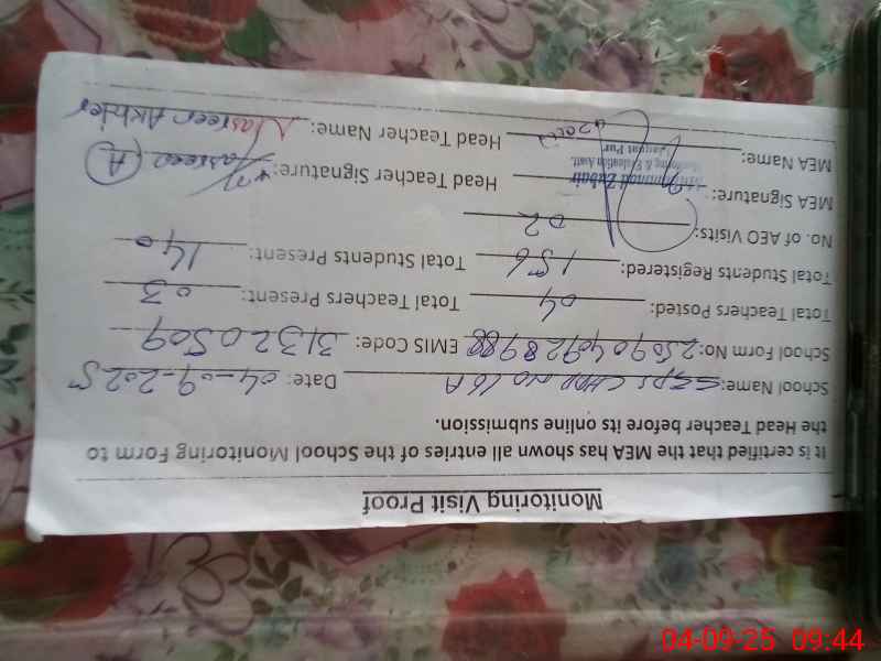 | Attendance Register | Head Teacher | MEA with School | Visit Proof |