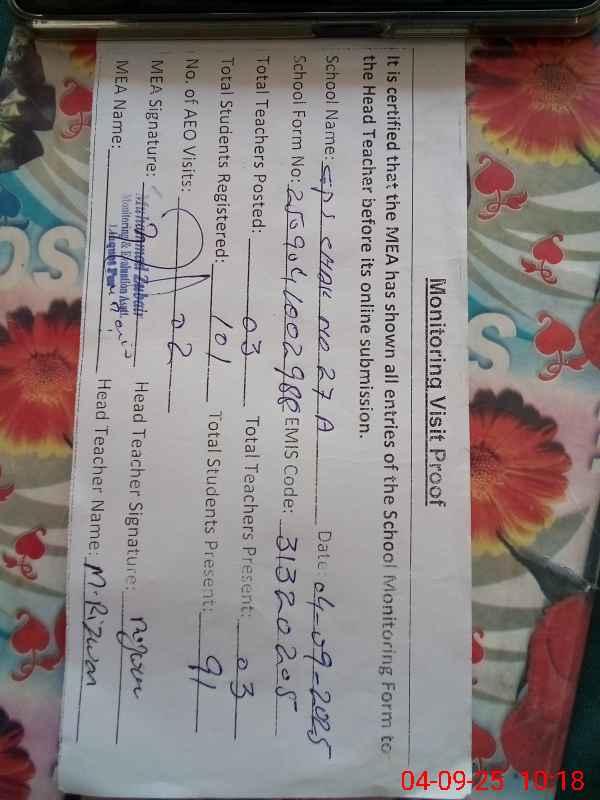 | EMIS Code: 31320205 | Name of School: GPS CHAK 27/A | |||