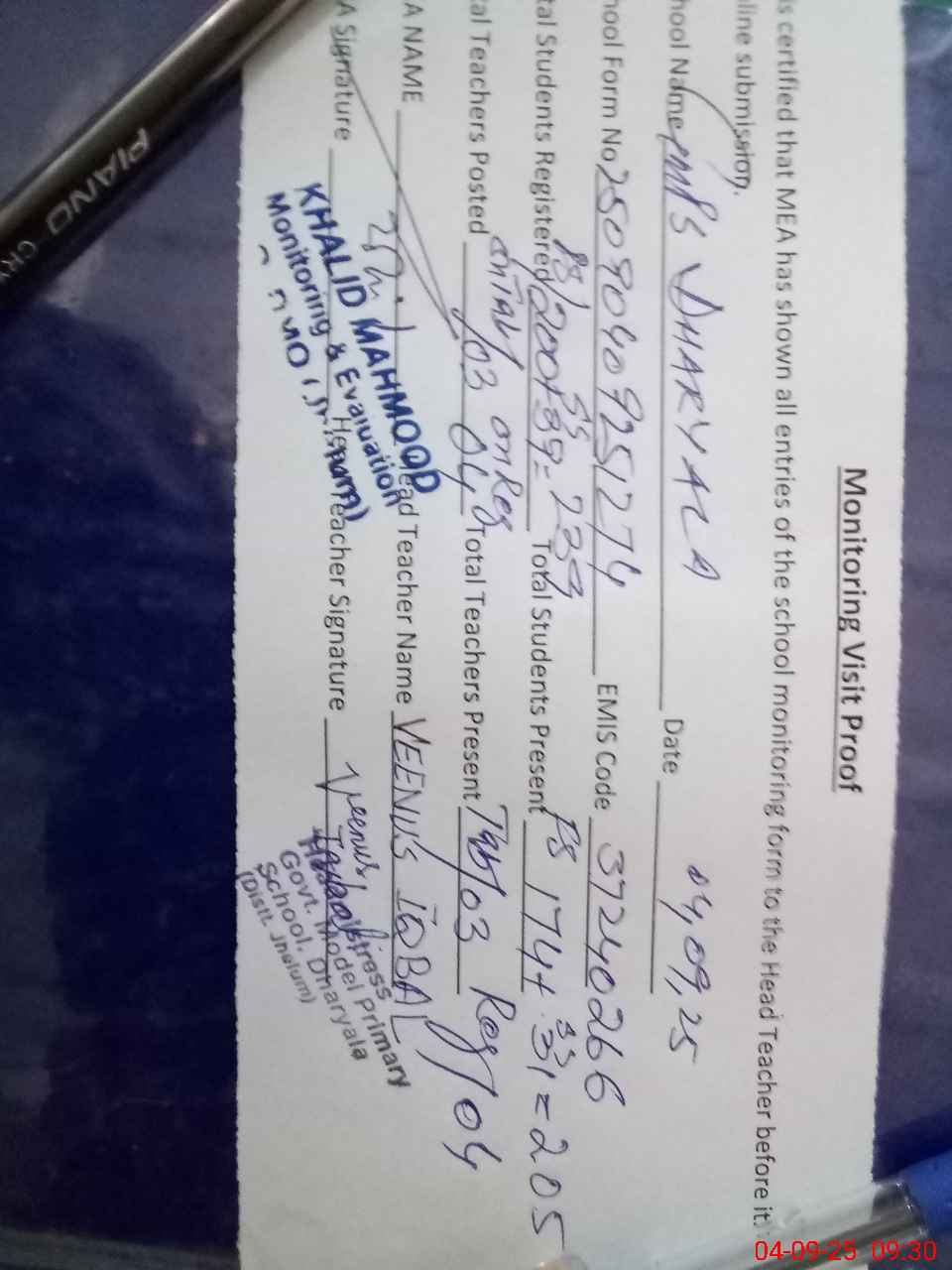 | EMIS Code: 37240266 | Name of School: GMPS DHARYALA | |||
