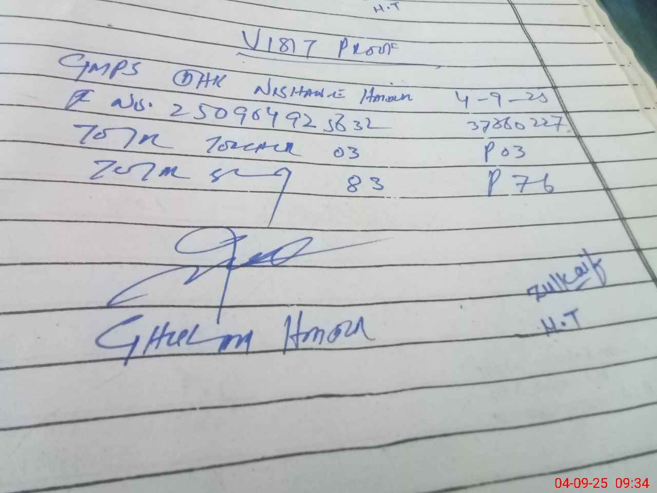 | Monitoring Date: 04-09-2025 | Start Time: 04-09-2025 09:18 AM | End Time: 04-09-2025 09:35 AM | Name of MEA: Gh**** Ha**** | |