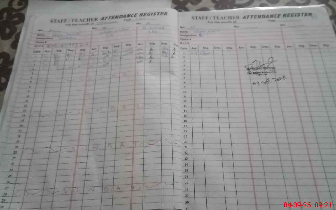 | 36**** | Ma**** Za**** Na**** | 12 | 1 | 0 | 0 | 0 | 0 | 0 | 0 | 0 | 0 | 0 | Absent (Un-Authorized) |