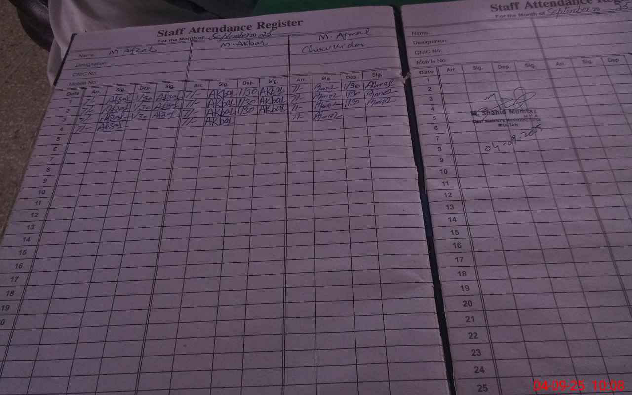 | CNIC | Full Name | Designation | R/C | Absence During Last Calender Month |