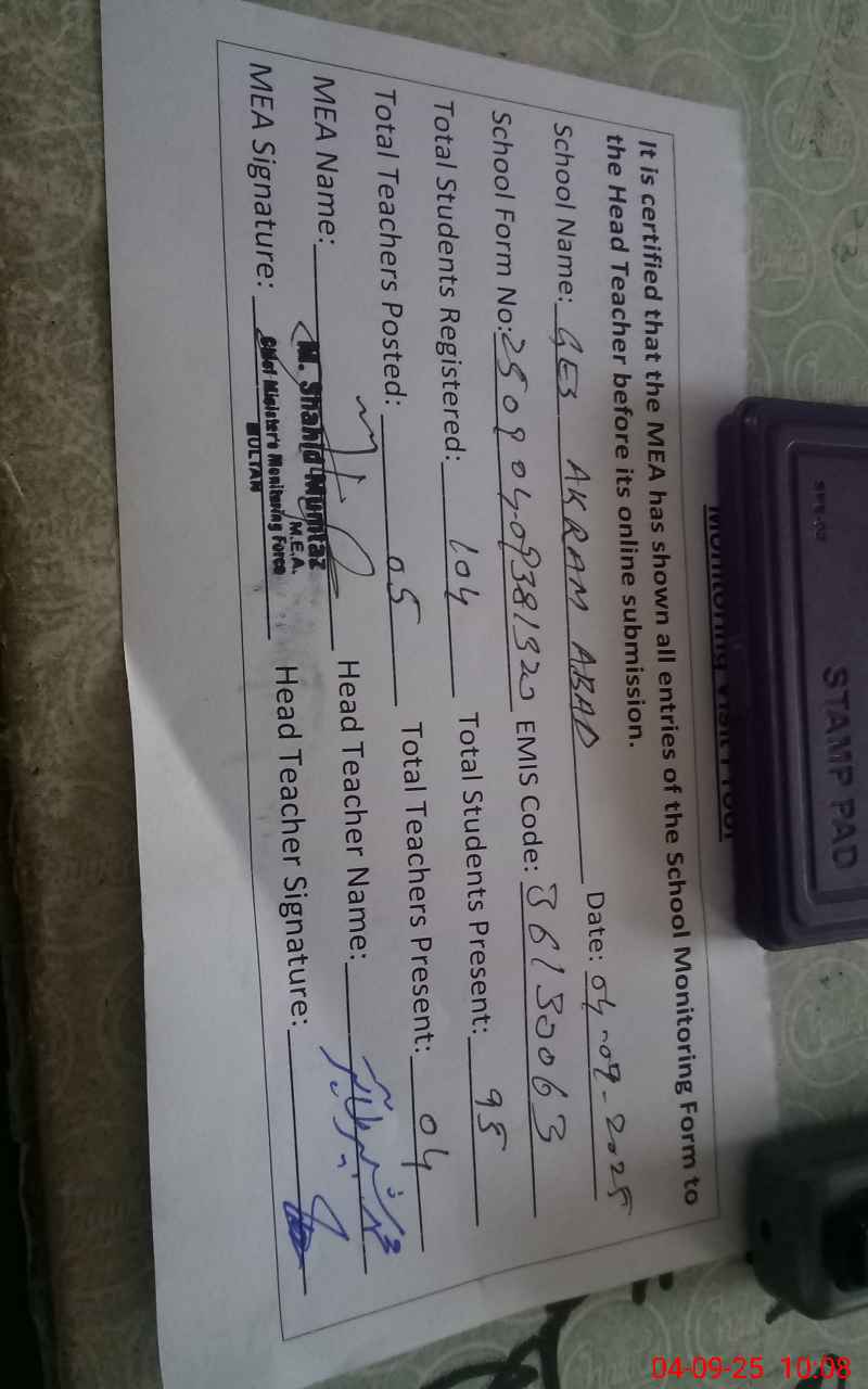 | EMIS Code: 36130063 | Name of School: GES AKRAM ABAD | |||
