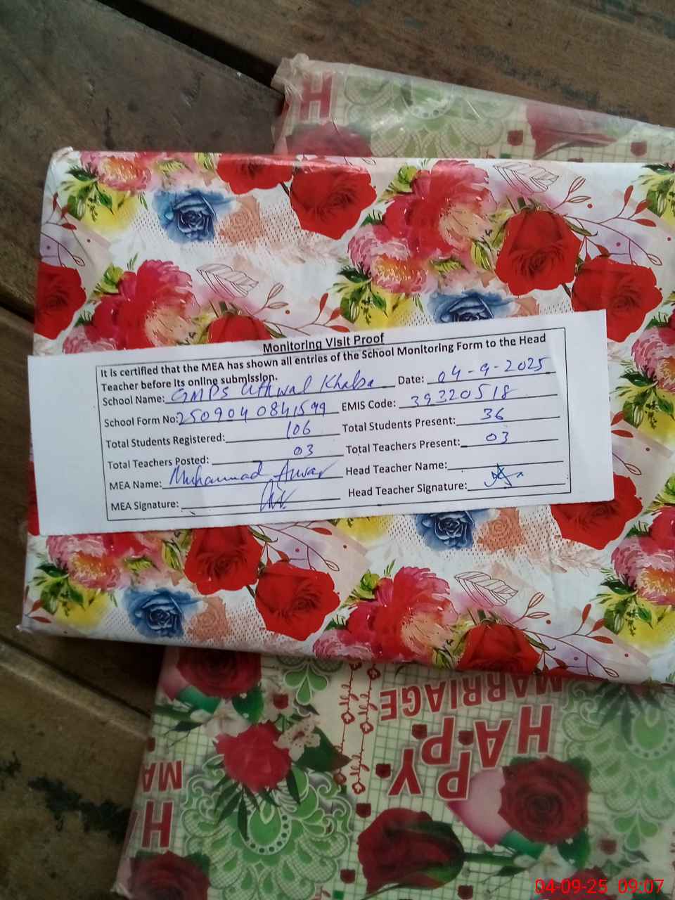 | Attendance Register | Head Teacher | MEA with School | Visit Proof |