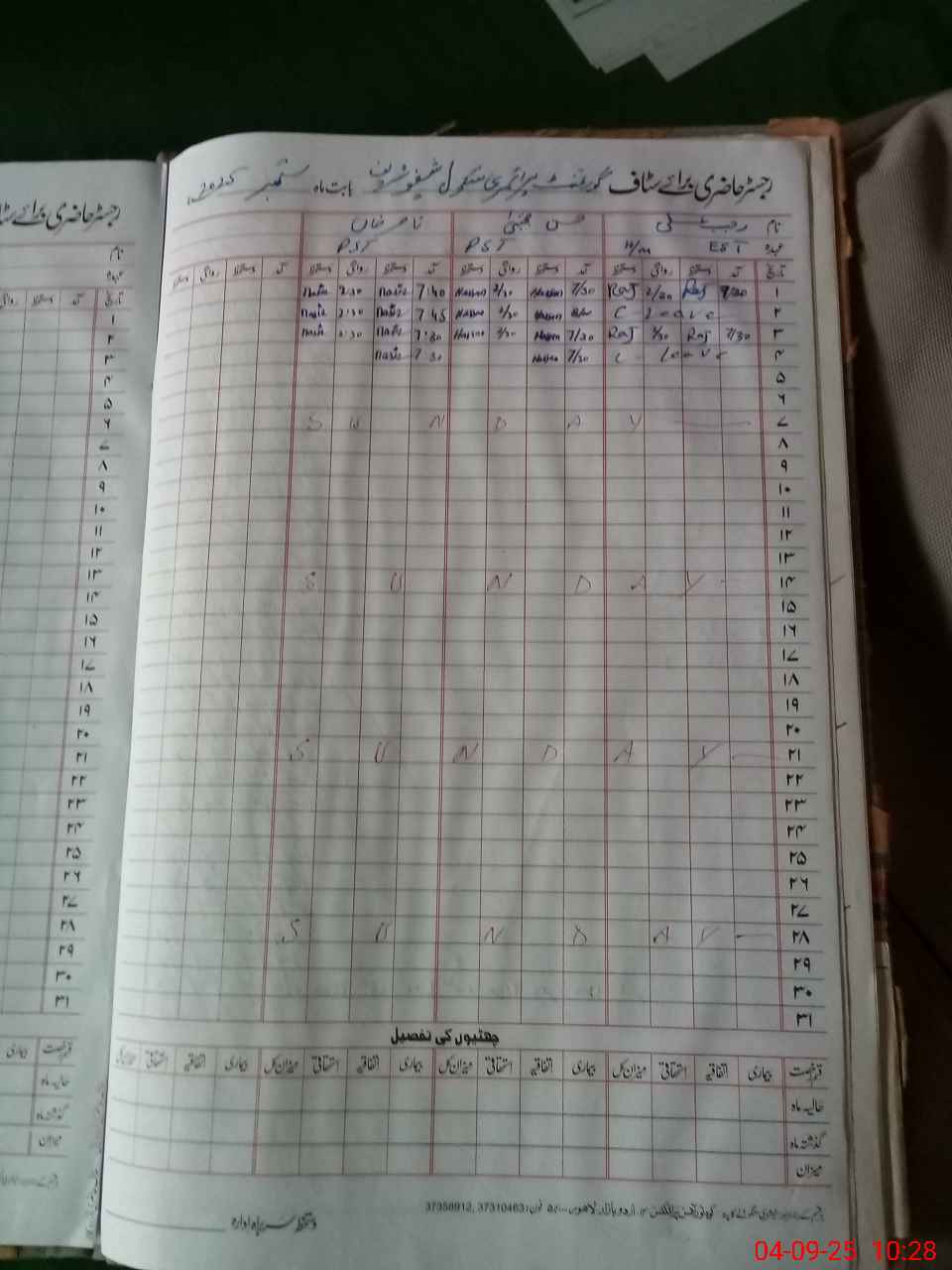 | CNIC | Full Name | Designation | R/C | Absence During Last Calender Month |