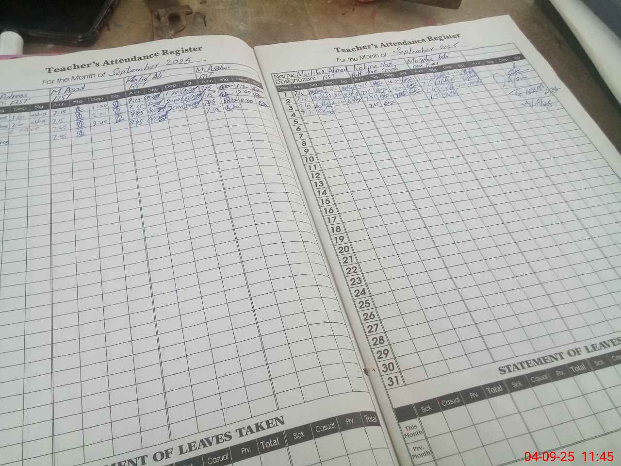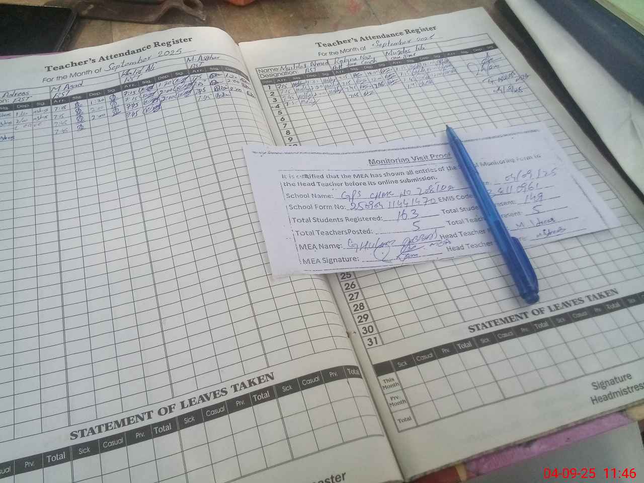 | Attendance Register | Head Teacher | MEA with School | Visit Proof |