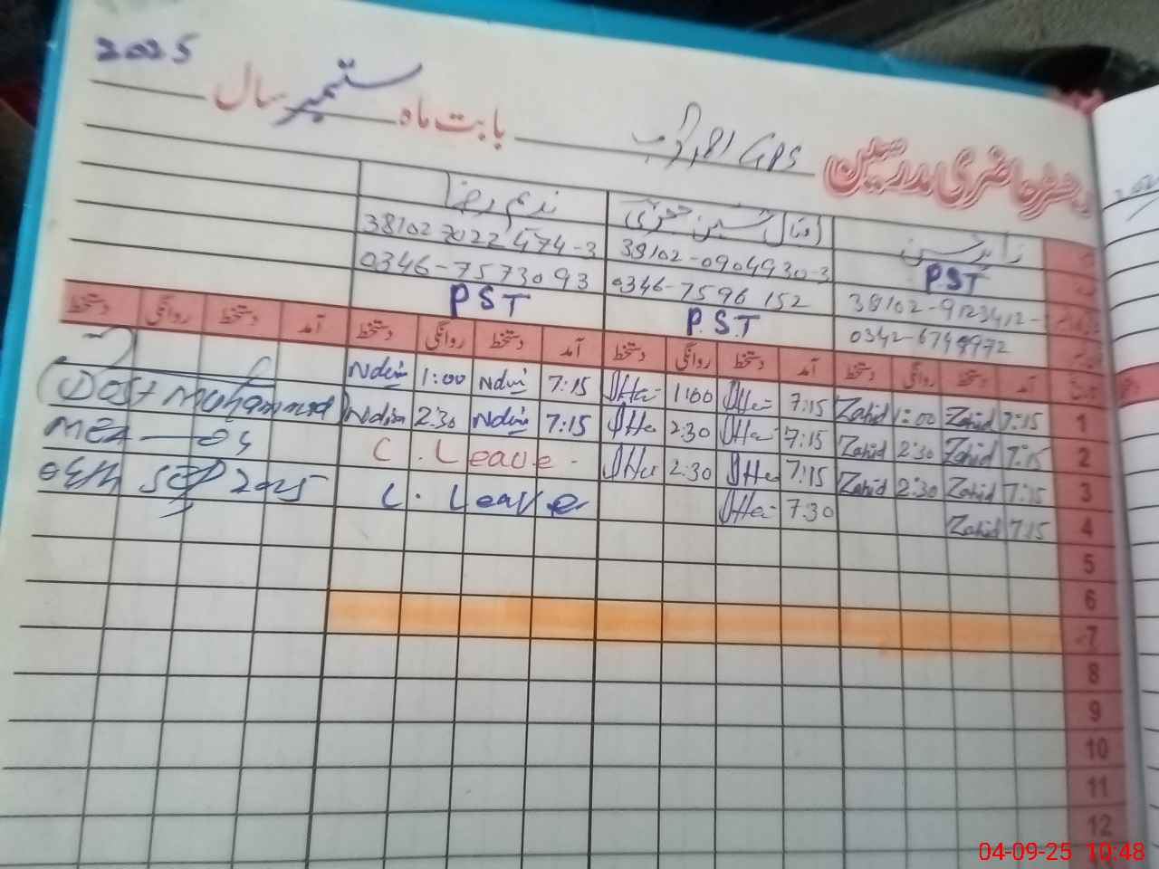 | Name: Za**** Hu**** Designation: (School Headmaster's/Headmistress's) PST Phone/Cell Number: 03**** |