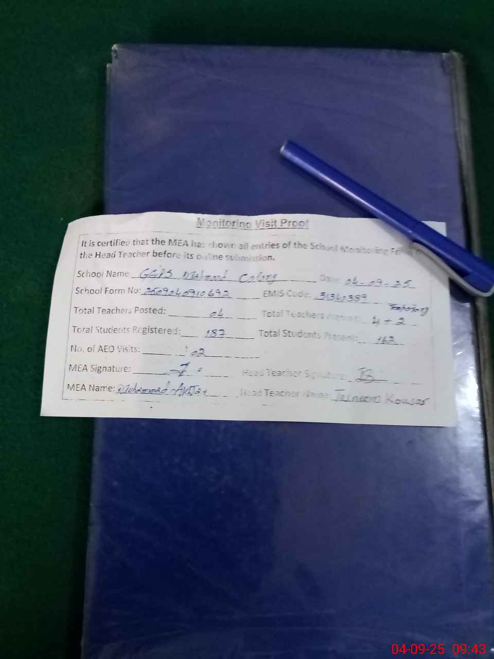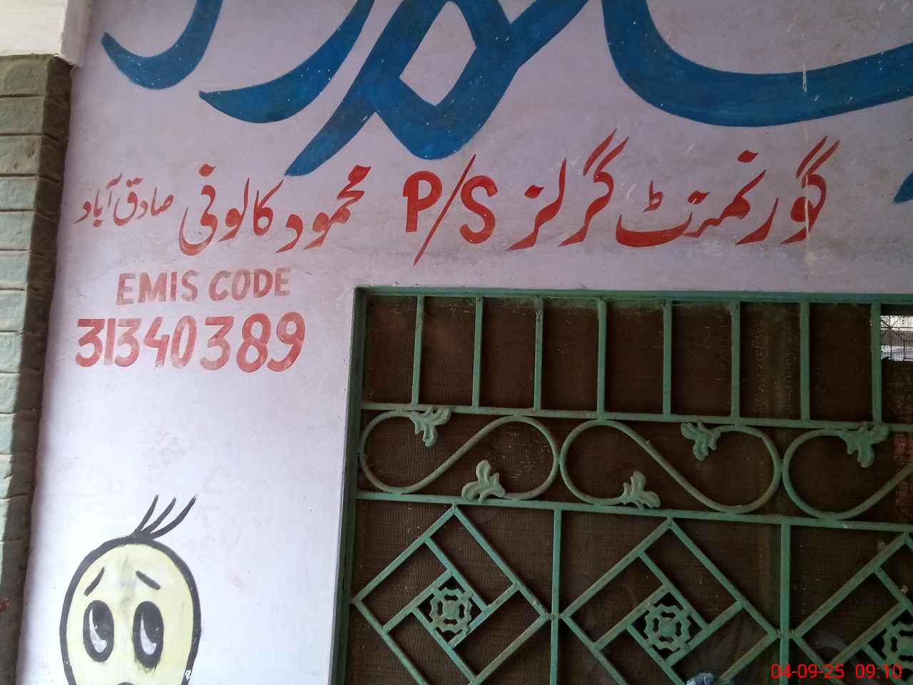 | EMIS Code: 31340389 | Name of School: GGPS MAHMOOD COLONY MUSTAFA TOWN | |||