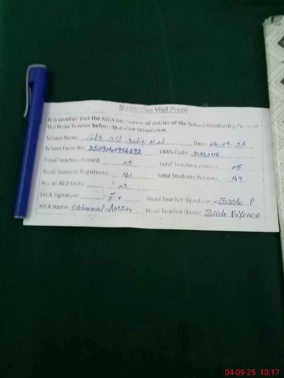 | EMIS Code: 31340114 | Name of School: GPS OLD SADIQABAD | |||