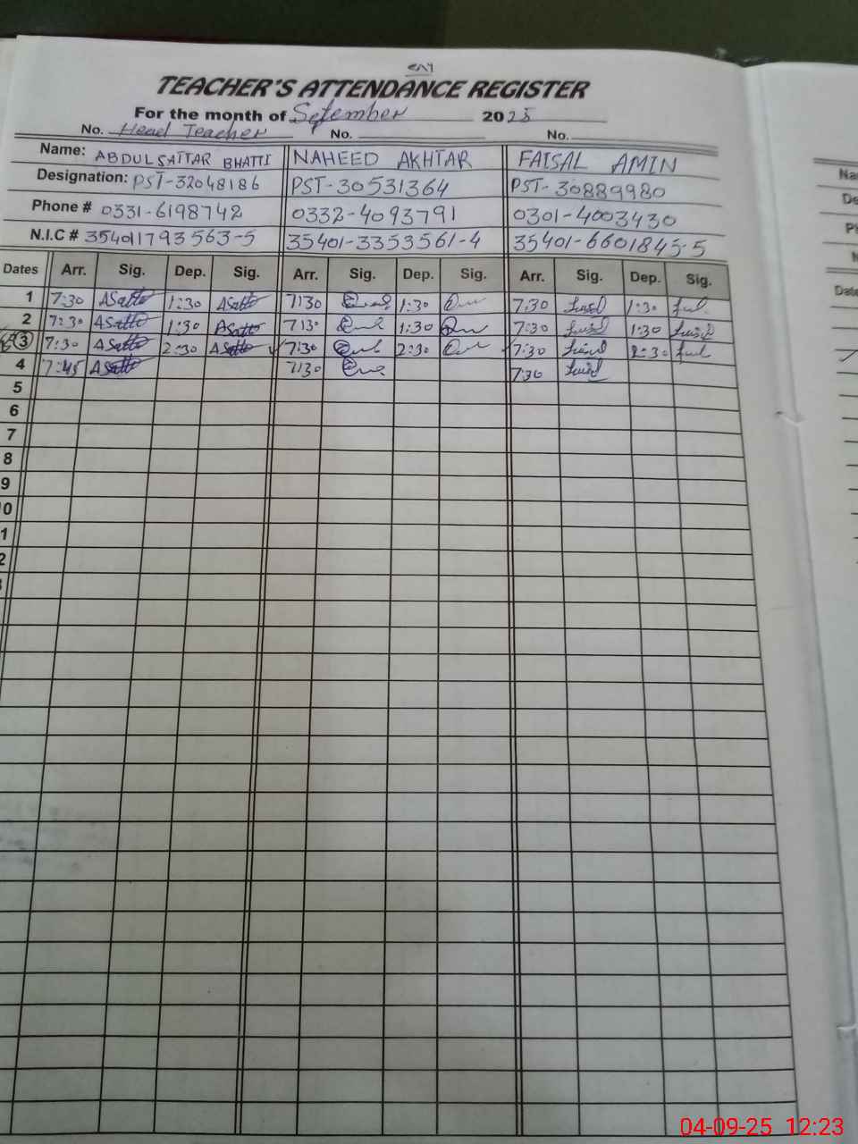| Name: SSa**** Designation: (School Headmaster's/Headmistress's) PTC/JV Phone/Cell Number: 03**** |
