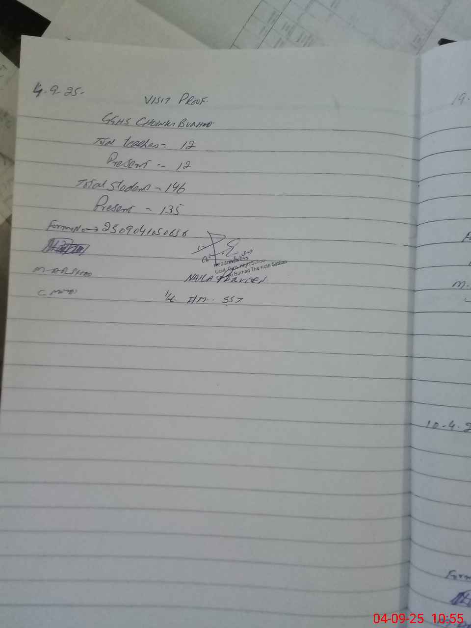 | Attendance Register | Head Teacher | MEA with School | Visit Proof |
