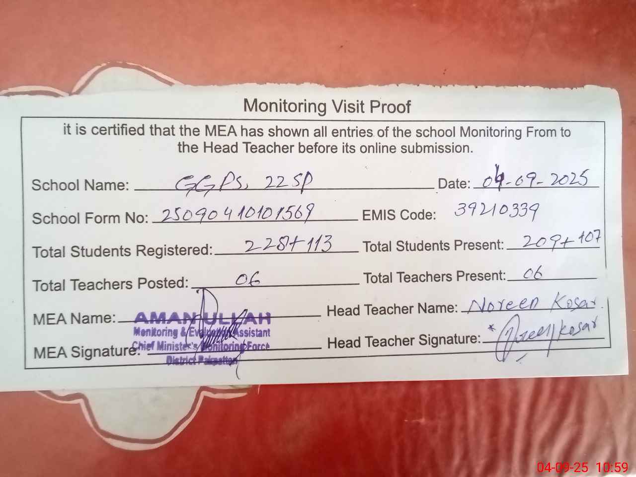 | EMIS Code: 39210339 | Name of School: GGPS 22 SP | |||