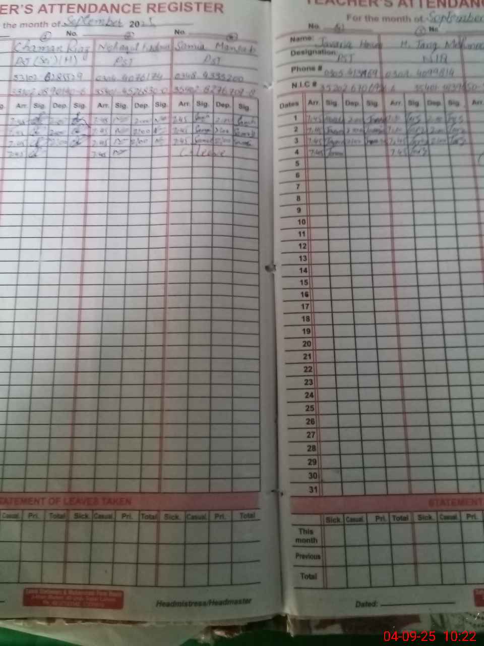 | Name: CH**** RI**** Designation: (School Headmaster's/Headmistress's) PTC/JV Phone/Cell Number: 03**** |