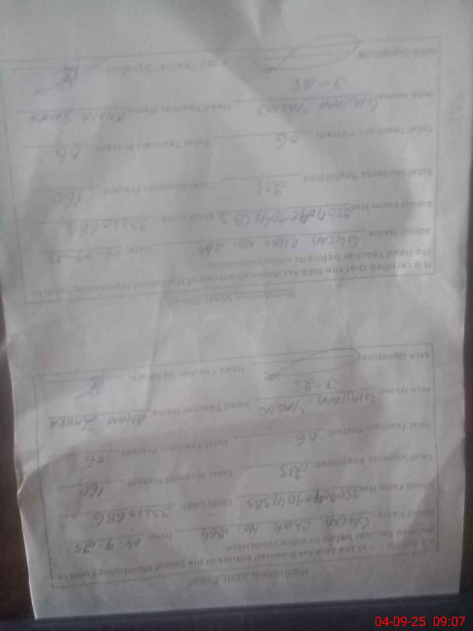 | Attendance Register | Head Teacher | MEA with School | Visit Proof |