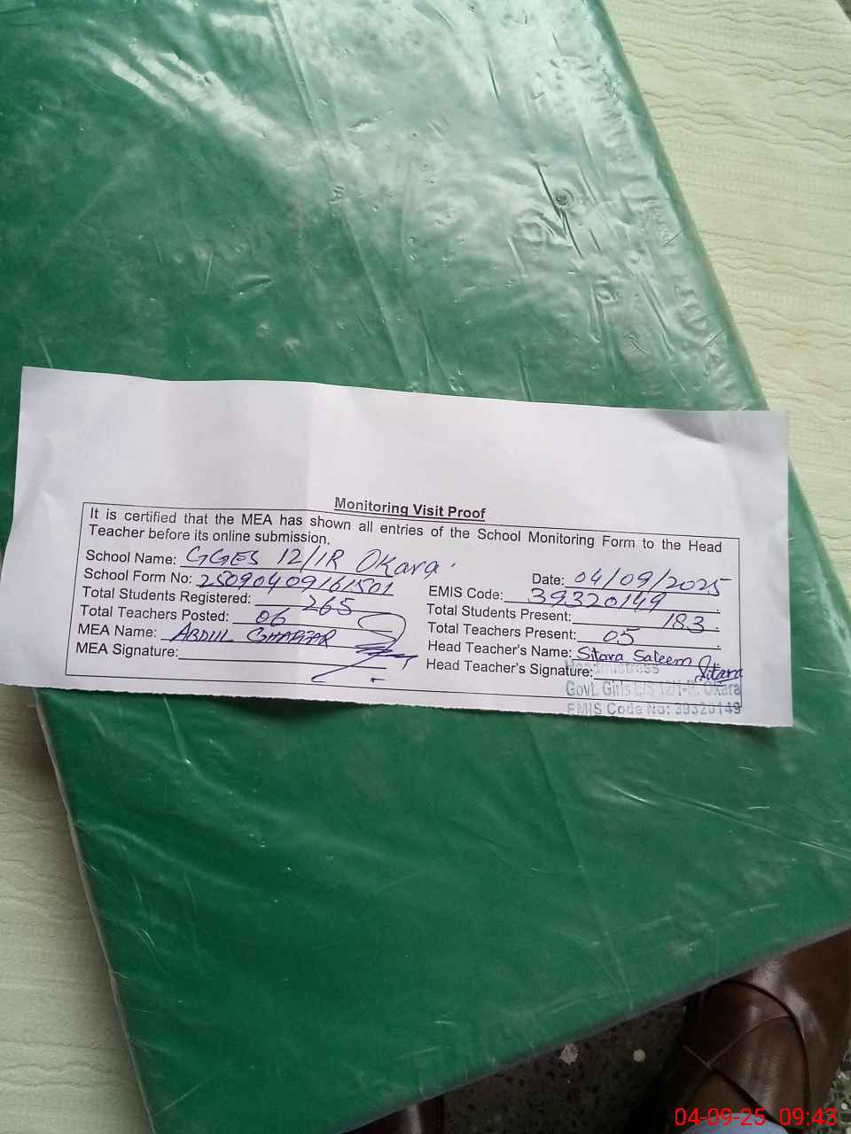 | EMIS Code: 39320149 | Name of School: GGES CHAK NO. 12/1-R | |||
