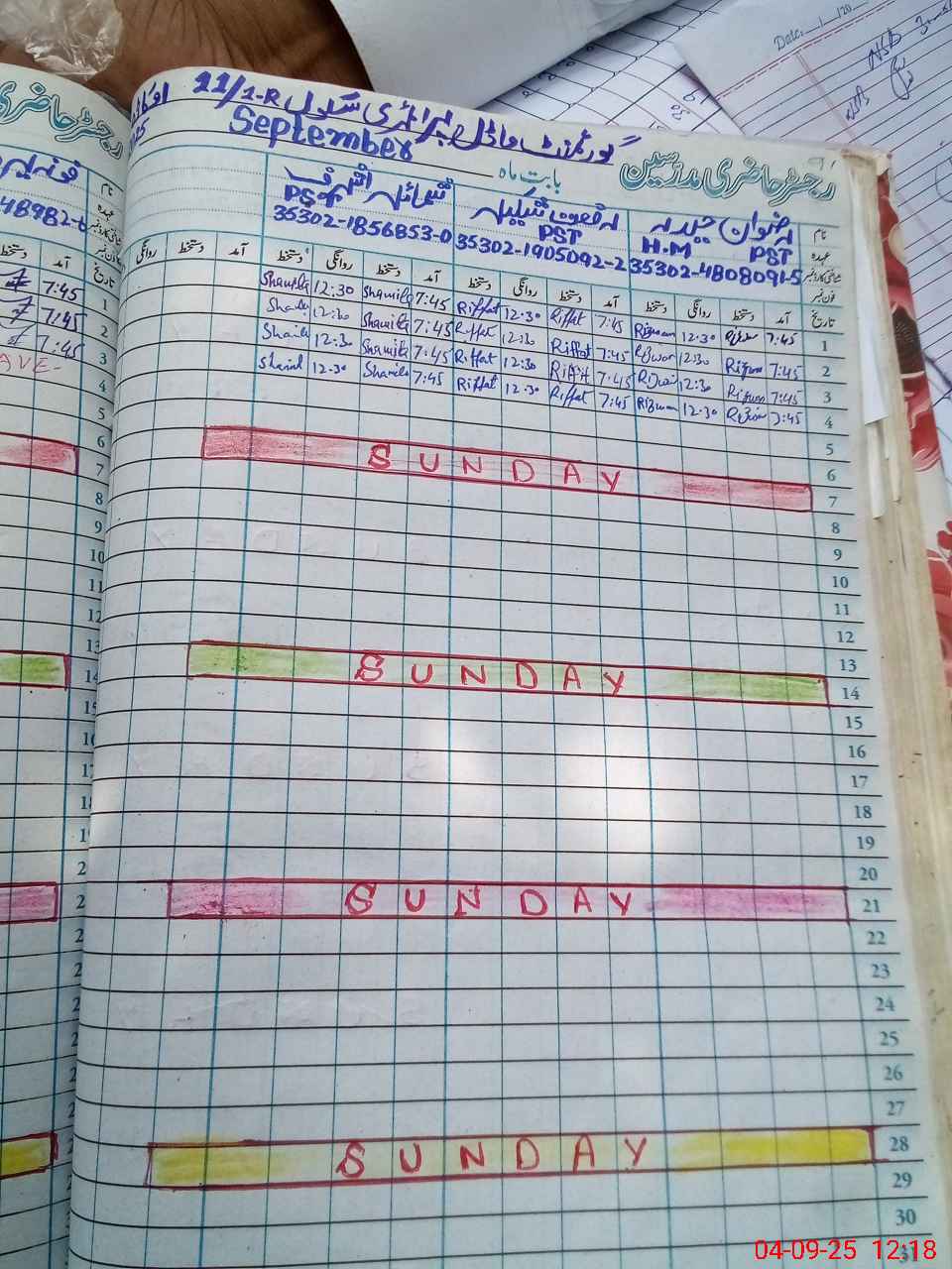 | CNIC | Full Name | Designation | R/C | Absence During Last Calender Month |