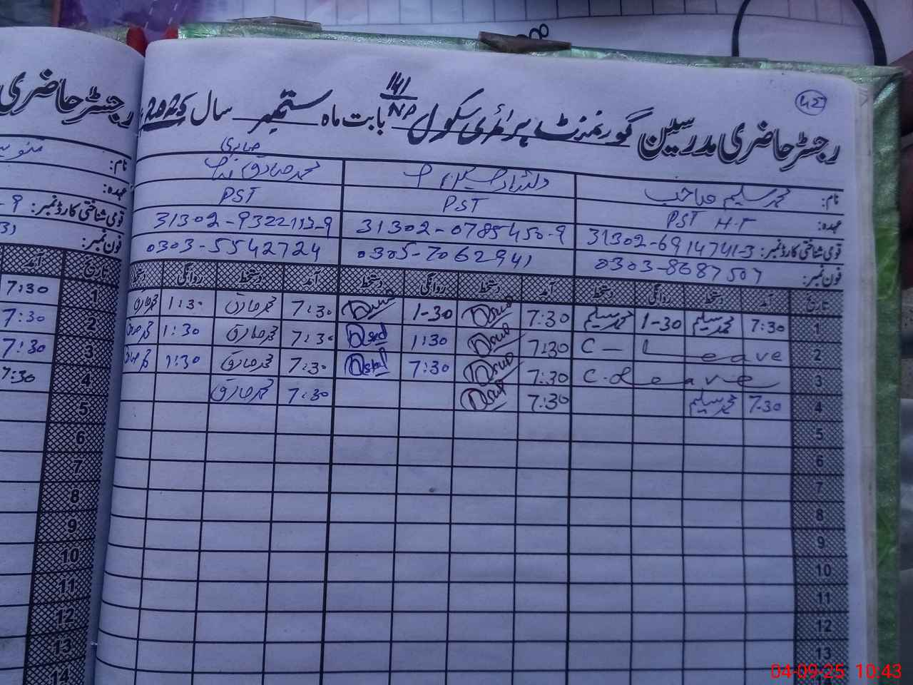 | Name: MU**** SA**** Designation: (School Headmaster's/Headmistress's) PST/PTC/JV Phone/Cell Number: 03**** |