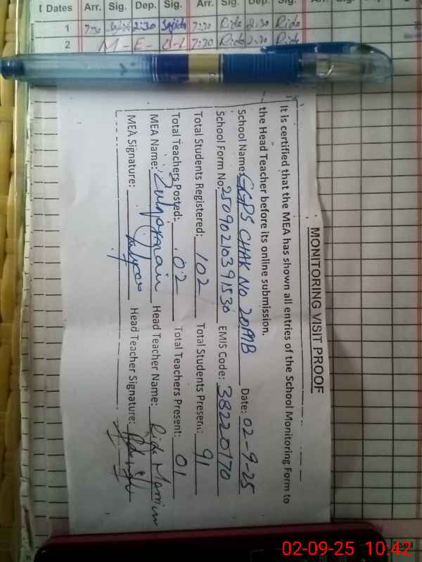 | EMIS Code: 38220170 | Name of School: GGPS CHAK NO 20 MB | |||