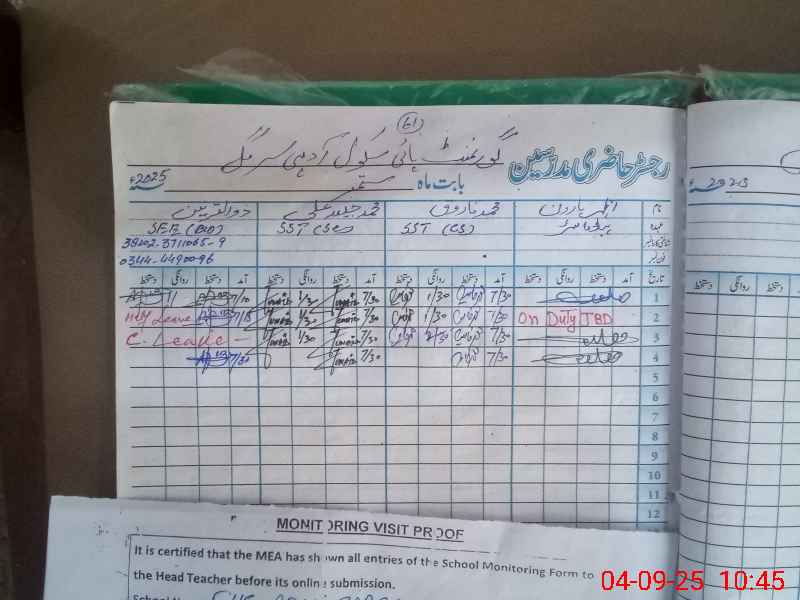 | Attendance Register | Head Teacher | MEA with School | Visit Proof |