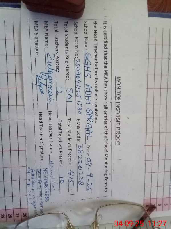 | EMIS Code: 38220238 | Name of School: GGHS ADHI SARGAL | |||